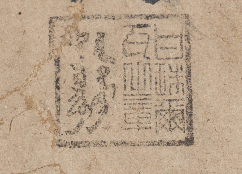 上有法印「圓通善慧 甘珠爾瓦 墨爾根 呼圖克圖印(篆文,依照印章上排列呈現)」同樣的文字亦以蒙文與藏文(མཁས་མཆོག་གེ་བའི་བཀའ་འགྱུར་བ་མུར་གེ་ཧུ་ཐོག་ཐུ་ཡིས་ཐཾ་ཀ།)書明。「甘珠爾瓦 墨爾根呼」的中間,刻有「民國弎年補鑄」字樣。